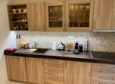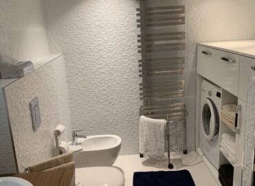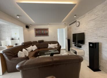 The Large Apartment is perfect for longer family stays. The apartment features 2 separate bedrooms (beds can be reconfigured on request), large bathroom with stand-in waterfall shower and washer, separate kitchen with a dining table and large living room with satellite flat-screen TV. The living room opens to a terrace seating space with a beautiful sea view.